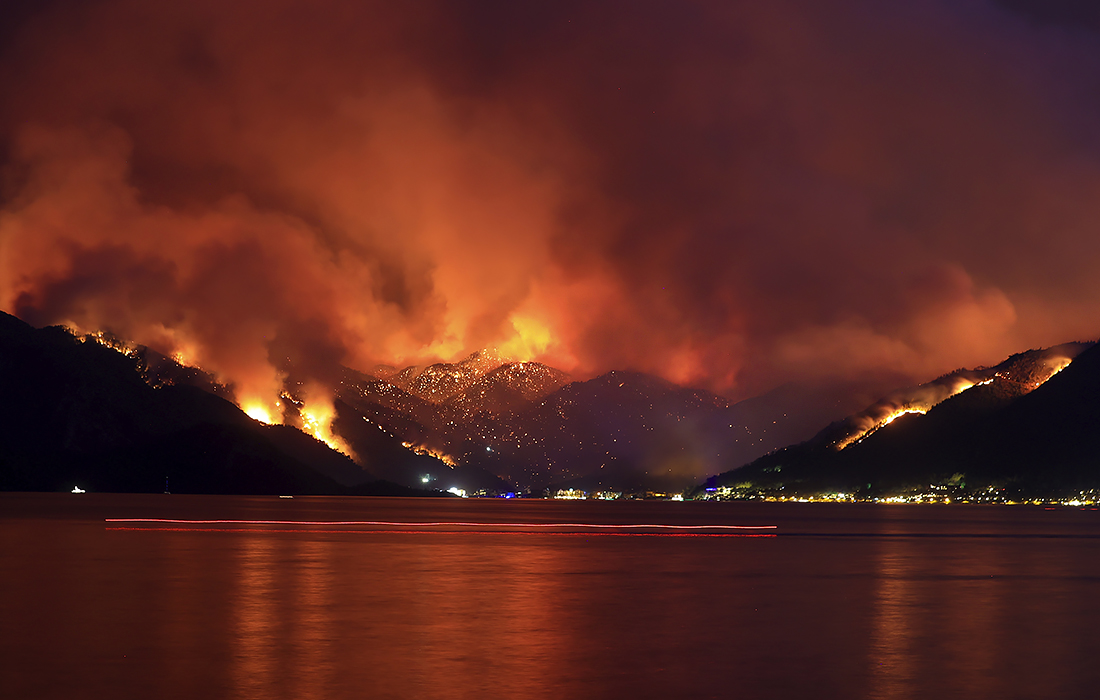 Из-за аномальной жары в Турции на западном и южном побережьях страны в течение последних двух дней продолжаются лесные пожары, сотни гектаров леса сгорели дотла. Пламя добралось до популярной туристической провинции Анталья. Спасатели эвакуировали жителей почти 20 населенных пунктов, один человек погиб. Более 60 человек госпитализированы с ожогами и проблемами с дыханием.