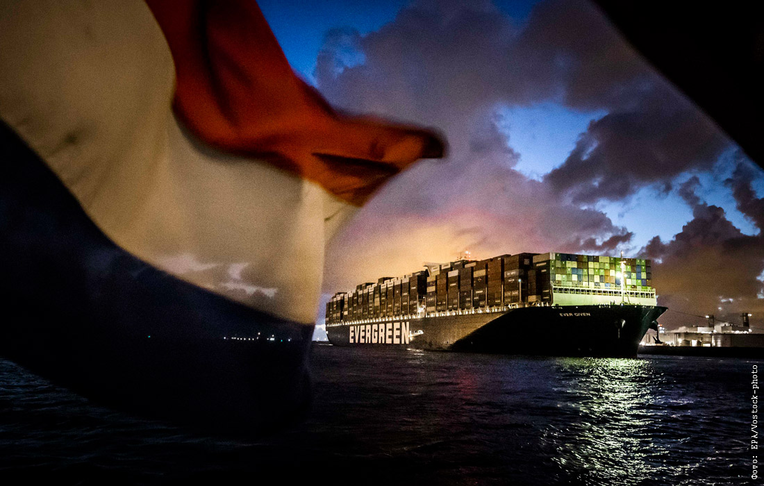 Контейнеровоз Ever Given, в конце марта севший на мель в Суэцком канале, прибыл в порт Роттердама