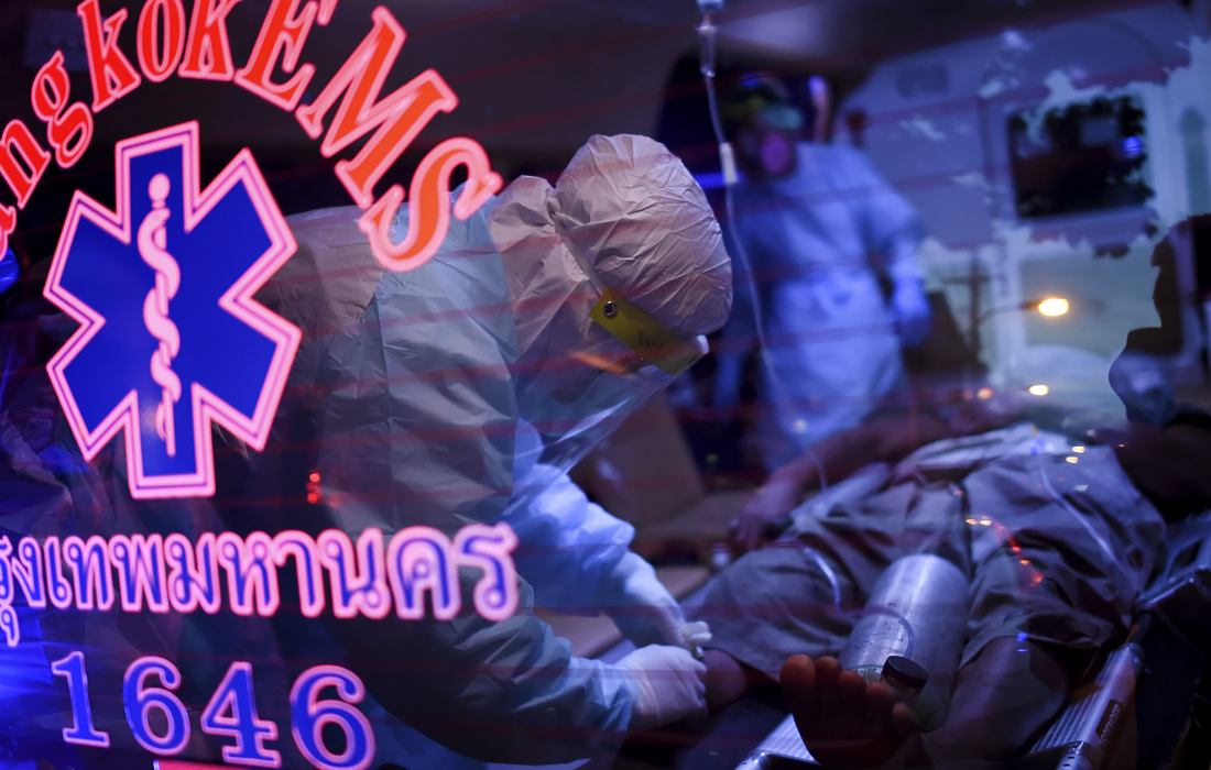 2 августа. Сотрудники скорой оказывают помощь бездомным с COVID-19 на улицах Бангкока.