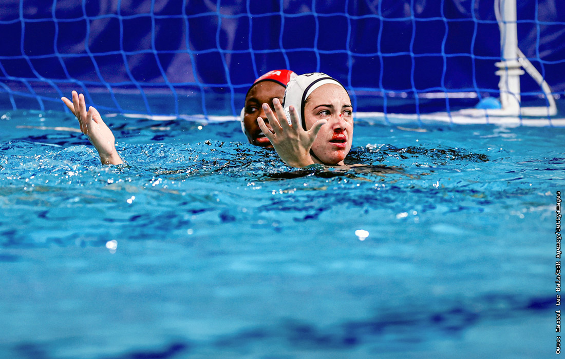 Эшли Джонсон и Маргарет Стеффенс из Соединенных Штатов получили травму во время женского матча по водному поло