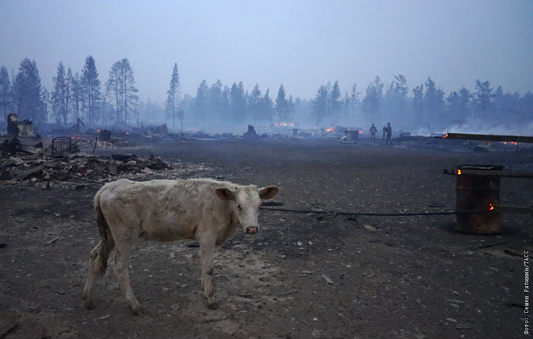 Лесные пожары продолжают бушевать во многих регионах России. Самая сложная ситуация в Якутии, где введен режим ЧС регионального характера. На фото: якутское село Бясь-Кюель.