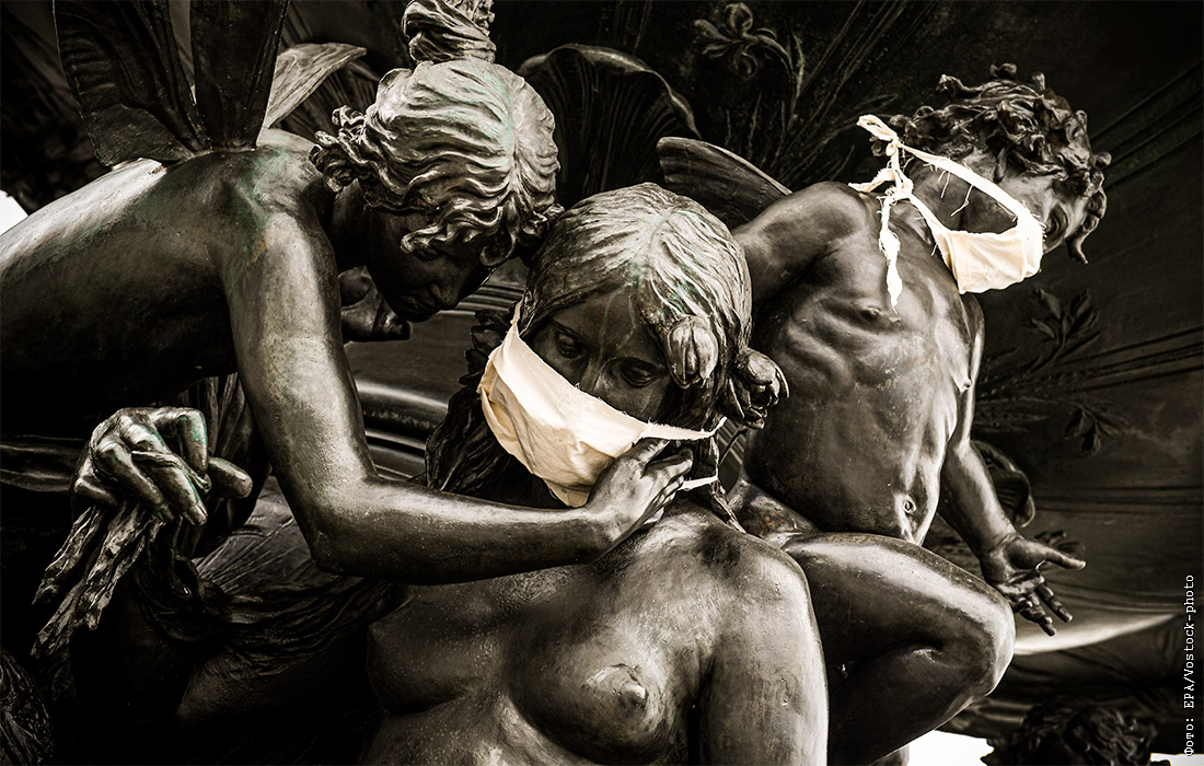 Защищаясь от коронавируса, статуи всего мира надевают маски, а "Интерфакс" показывает, как это происходит