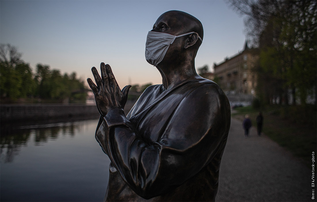 Защищаясь от коронавируса, статуи всего мира надевают маски, а "Интерфакс" показывает, как это происходит