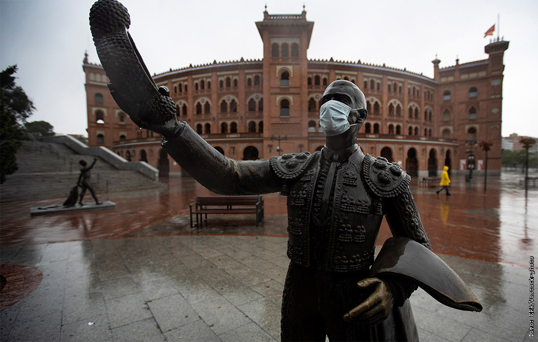 Статуя тореадора у арены в Мадриде авторства скульптора Эмилио Лаиса Кампоса тоже в маске