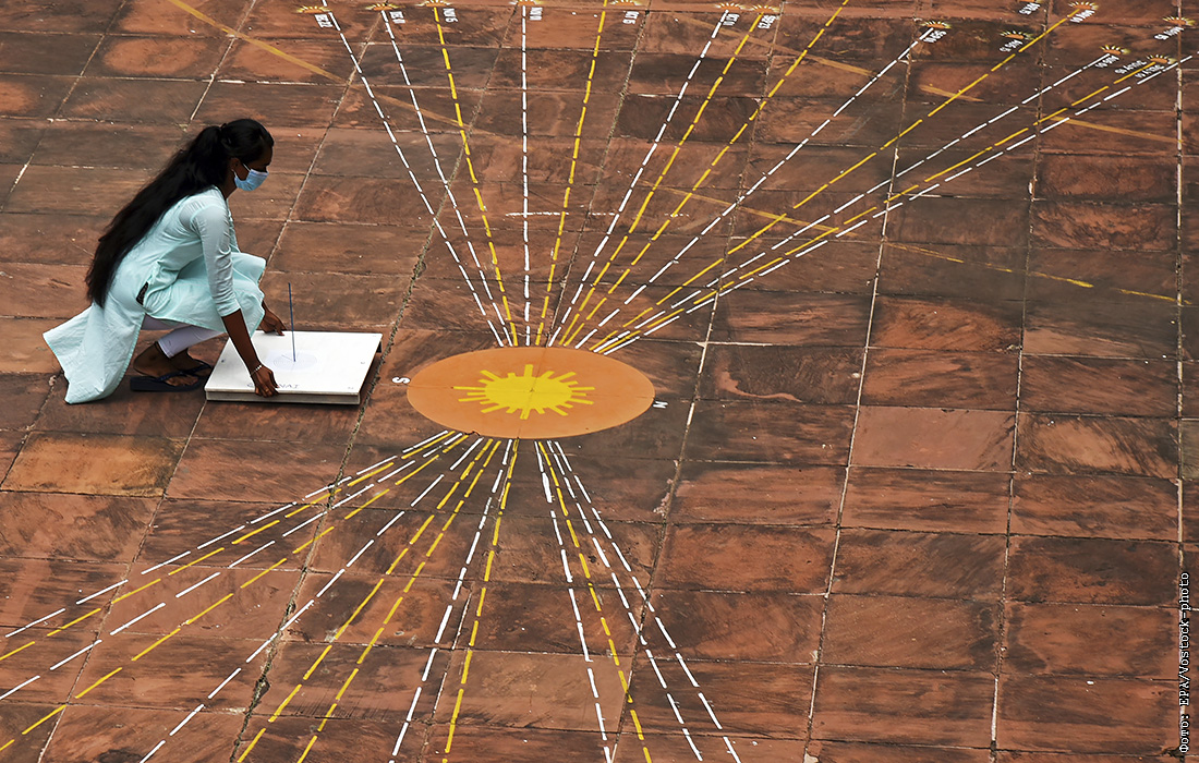 Женщина использует прибор для наблюдения в День нулевой тени в планетарии Бирла в индийском Ченнаи. В этот день солнце не отбрасывает тень объекта в полдень. Обычно это наблюдается в разное время в разных местах по всему миру.