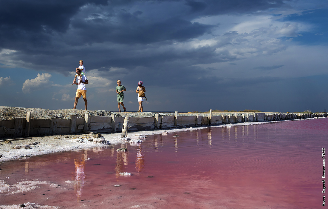 Туристы на озере Сасык-Сиваш в Крыму