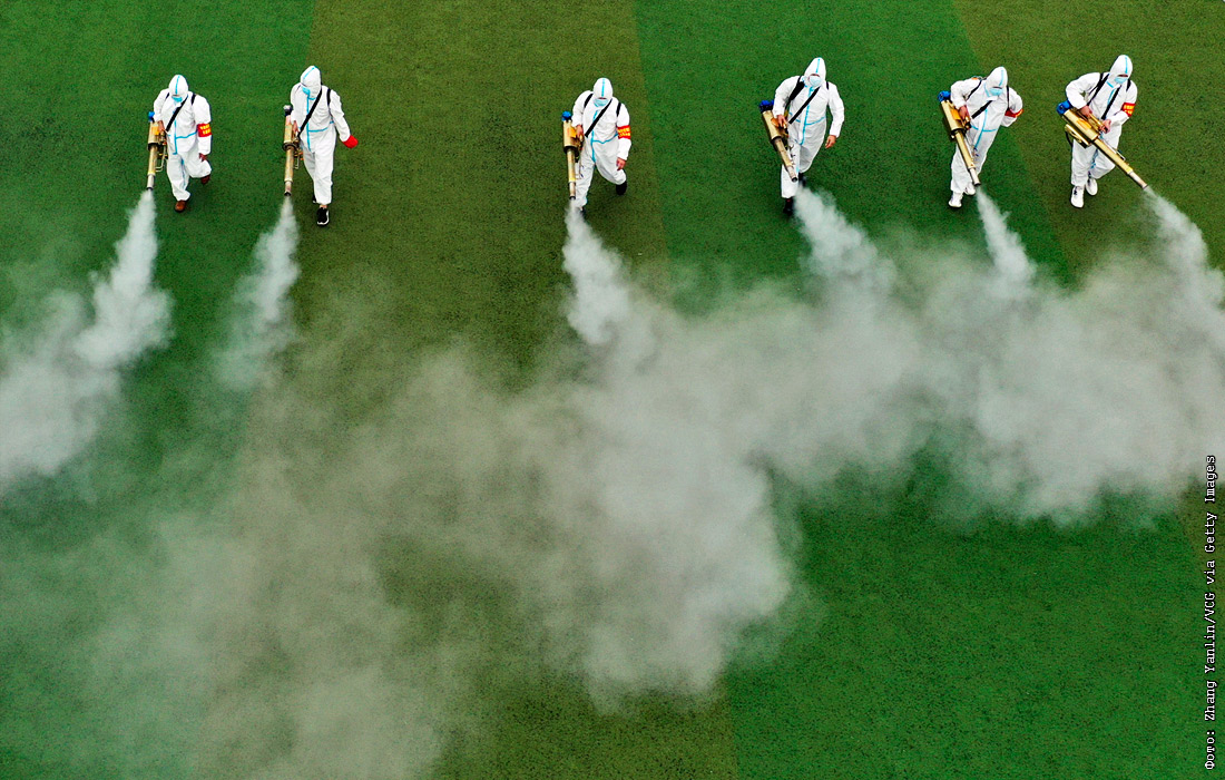 Дезинфекция стадиона средней школы в Бочжоу, Китай