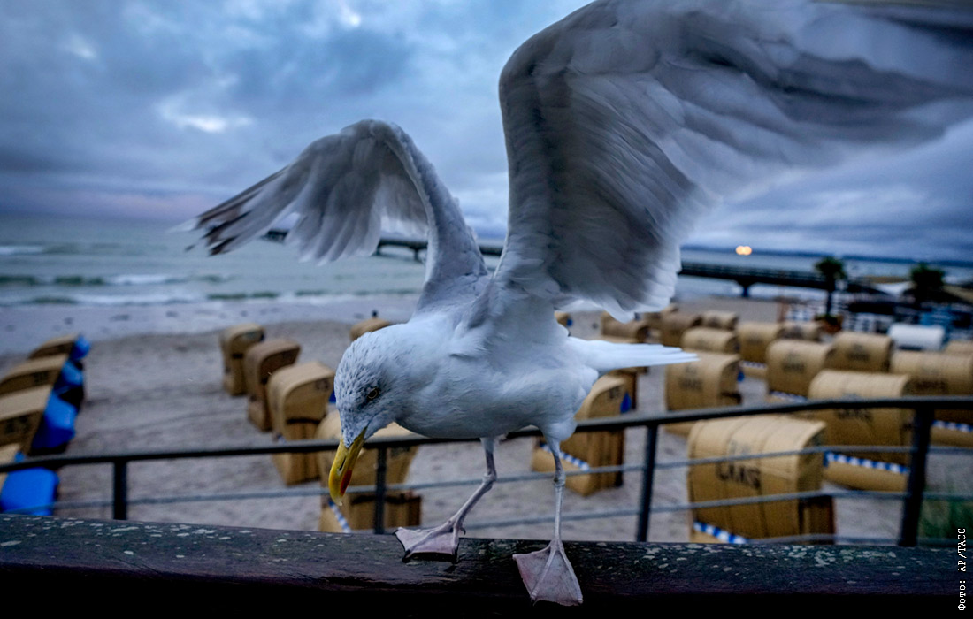 Чайки на побережье Балтийского моря в немецком Шарбойце