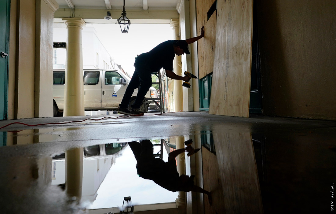 Жители Луизианы заколачивают окна и укрепляют строения мешками с песком