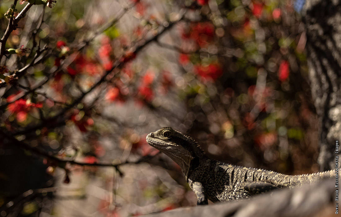 Водяная ящерица в Ботаническом саду Оберна, Австралия