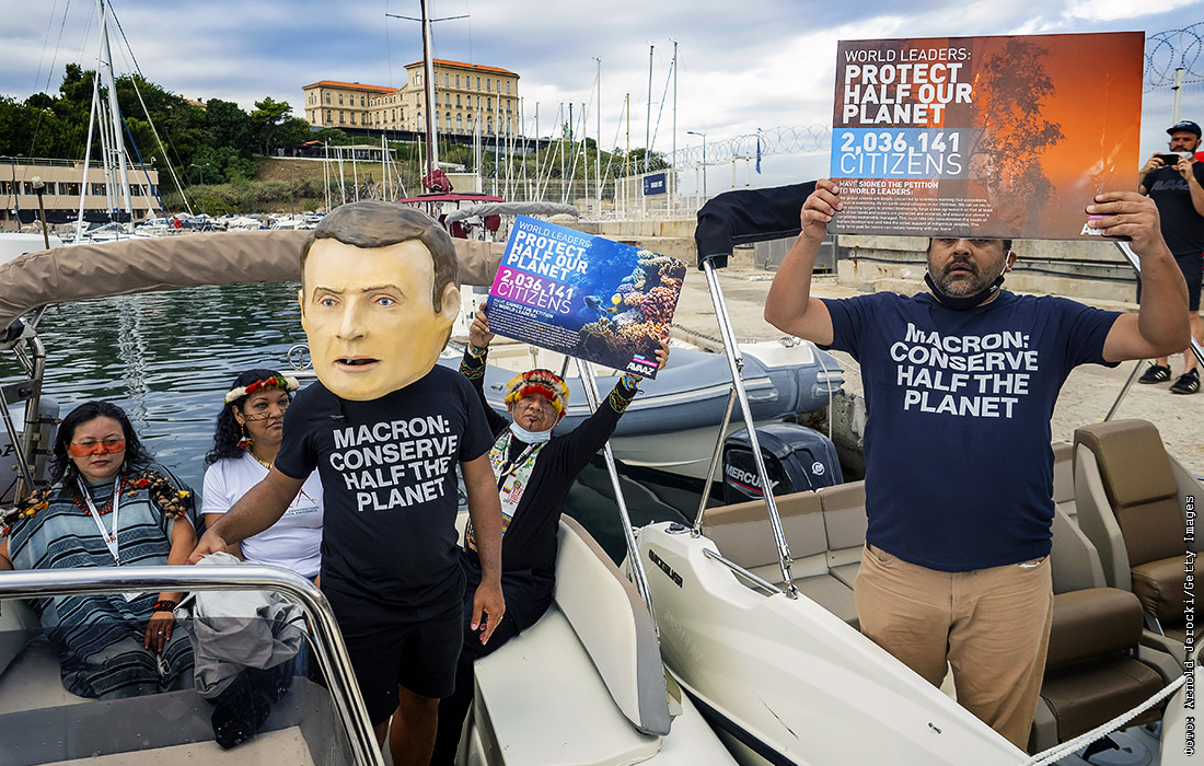 Демонстрация активистов из Амазонии во время Всемирного конгресса МСОП в Марселе