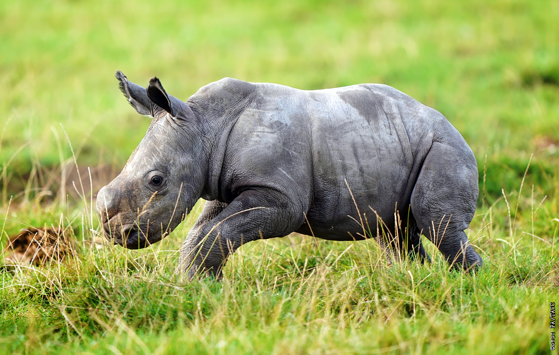 Детеныш белого носорога по кличке Нанди в Уипснейдском зоопарке в Великобритании