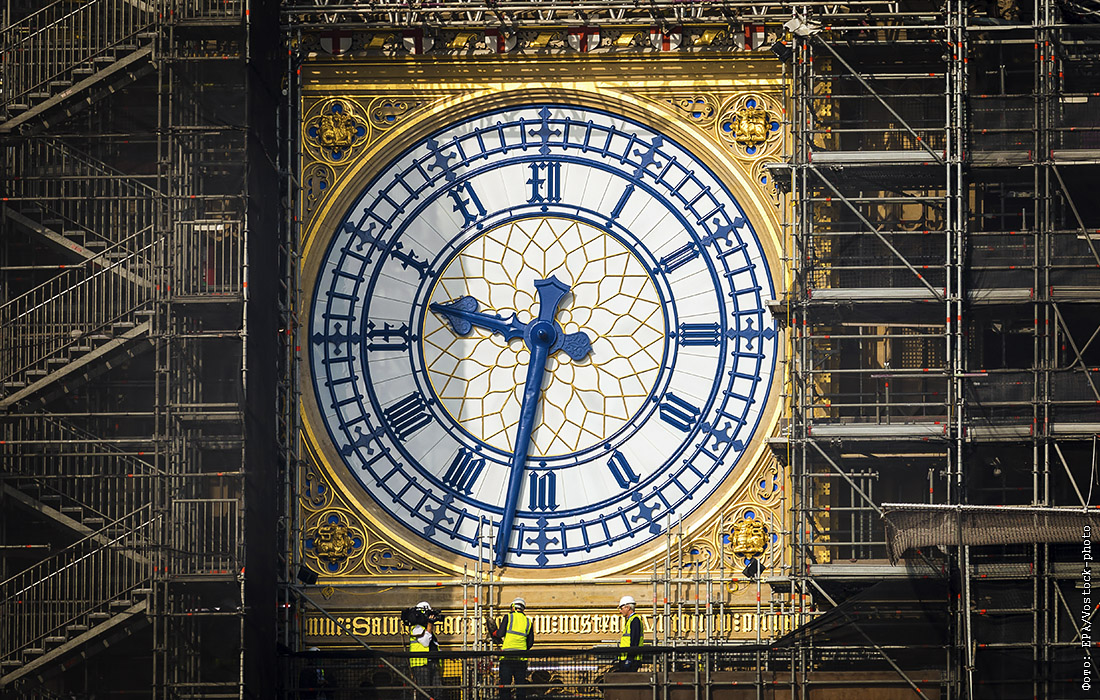 Стрелкам часов лондонского Биг-Бена после реставрации, которая велась с 2017 года, вернули первоначальный синий цвет