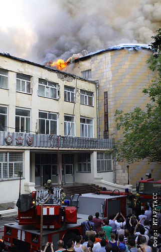 На севере Москвы в четверг произошел сильный пожар: в районе метро "Динамо" на территории академии Жуковского загорелся ангар со строительным мусором. Ущерб от пожара для академии оценивается как огромный