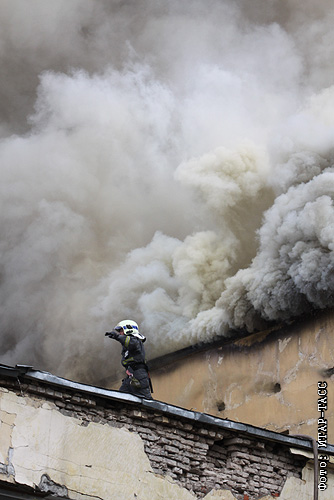 На севере Москвы в четверг произошел сильный пожар: в районе метро "Динамо" на территории академии Жуковского загорелся ангар со строительным мусором. Ущерб от пожара для академии оценивается как огромный