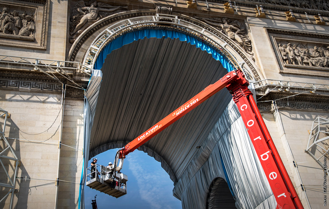 В Париже начались работы над проектом художника-авангардиста Христо по "упаковке" Триумфальной арки в ткань