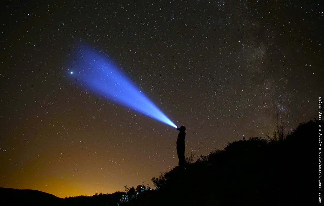 Ночное небо над кратерным озером в Турции