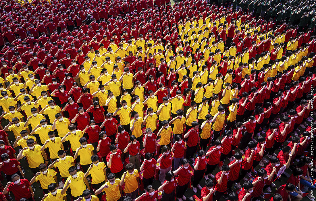 Студенты Хуачжунского университета науки и техники в Ухане на церемонии, посвященной началу нового семестра