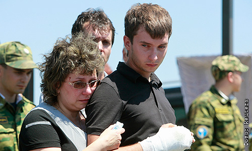 Во время похорон погибших от наводнения в Крымске на Центральном кладбище.