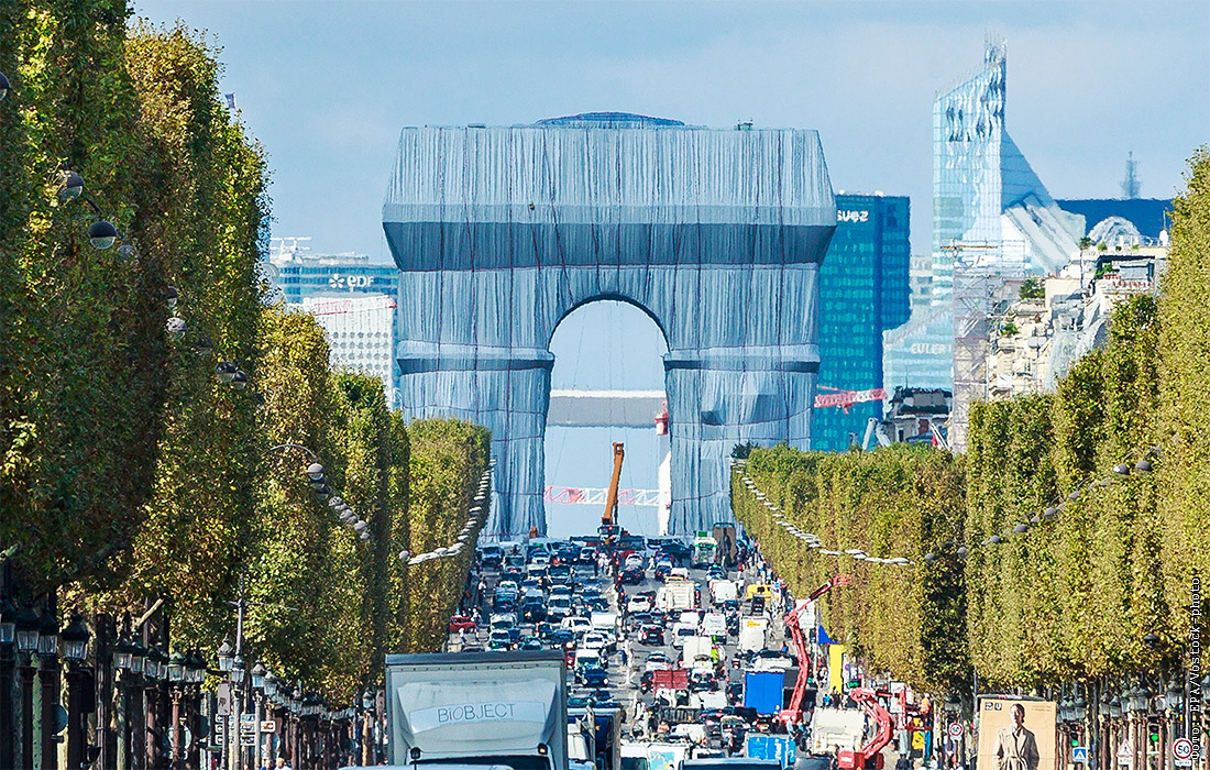 Мечта умершего год назад художника Христо Явашева сбылась и теперь Триумфальная арка в Париже обернута тканью. При жизни американский художник успел укутать Рейхстаг и несколько объектов поменьше.