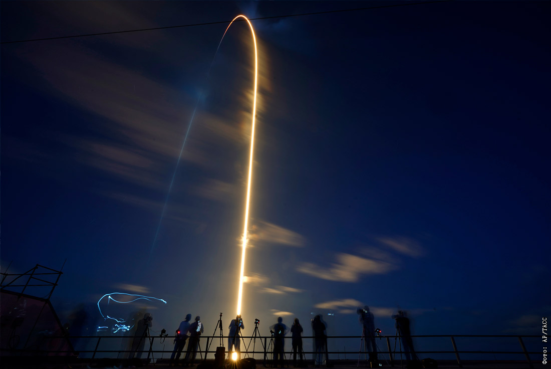 Запуск корабля Crew Dragon c космодрома на мысе Канаверал, штат Флорида, США