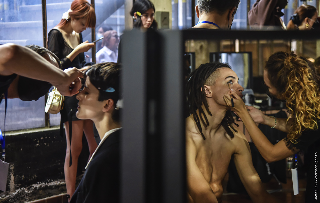 Модели за кулисами на презентации коллекции британца Джона Ричмонда