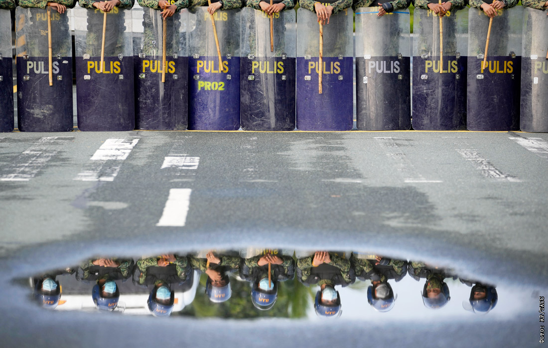 Сотрудники полиции Манилы охраняют район, где проходит регистрация кандидатов на пост президента Филиппин