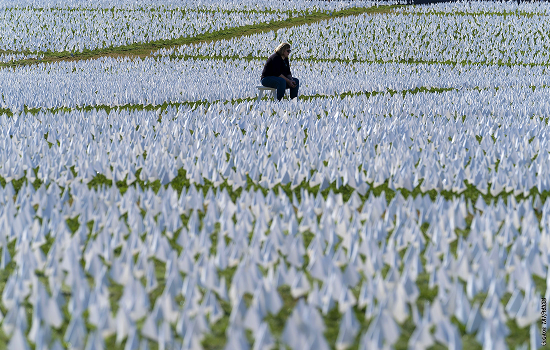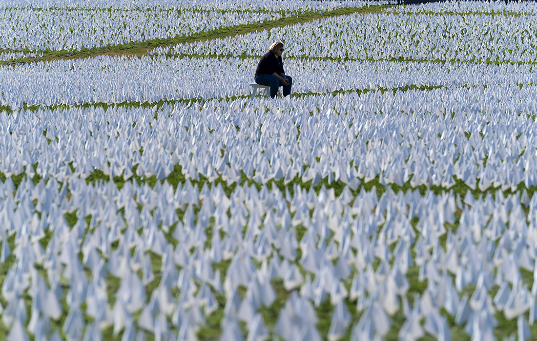 2 октября. Число погибших от COVID-19 в США превысило 700 000 - это больше населения Бостона. На фото: арт-инсталляция, посвященная жертвам COVID-19, в Вашингтоне.