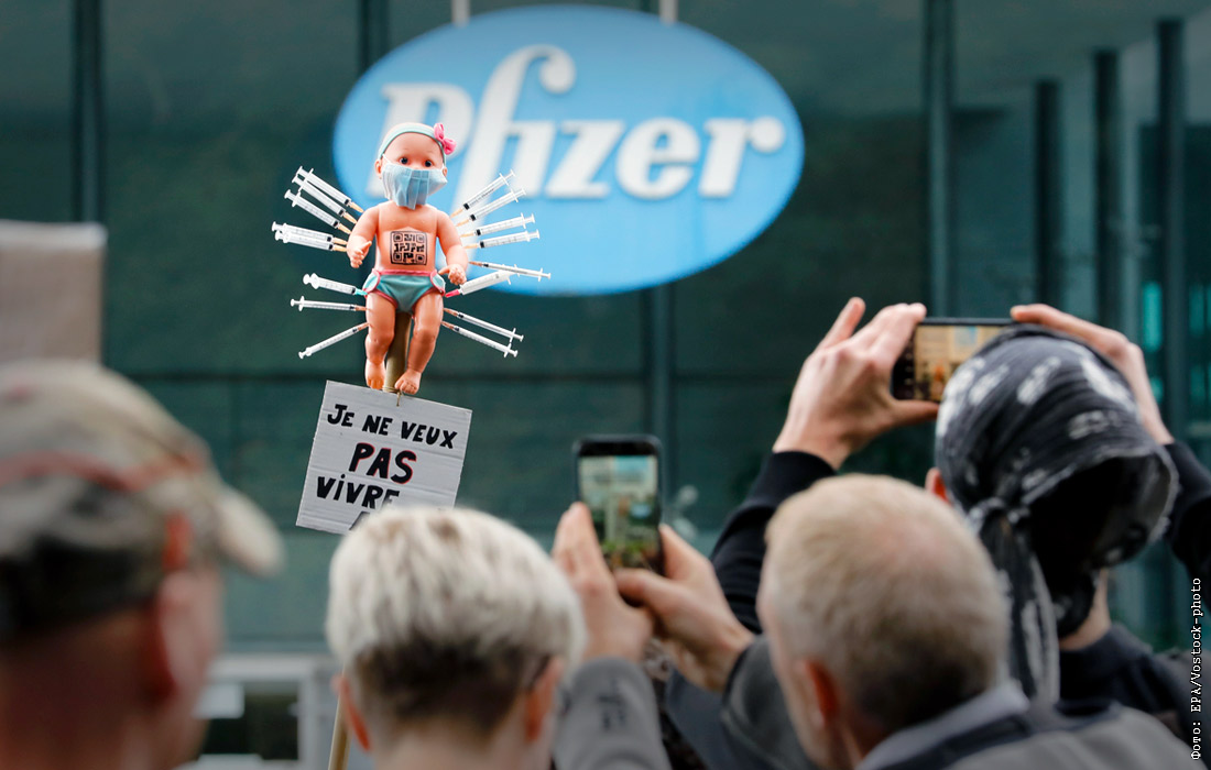 18 октября. В Брюсселе перед штаб-квартирой Pfizer прошла акция протеста против ковид-паспортов.