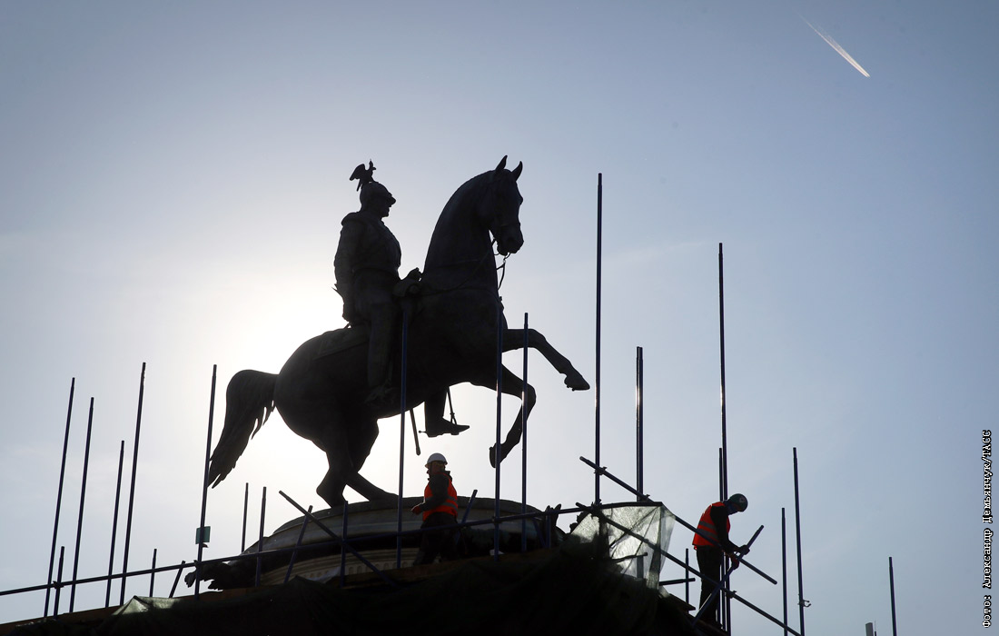 Реставрация памятника Николаю I на Исаакиевской площади в Санкт-Петербурге