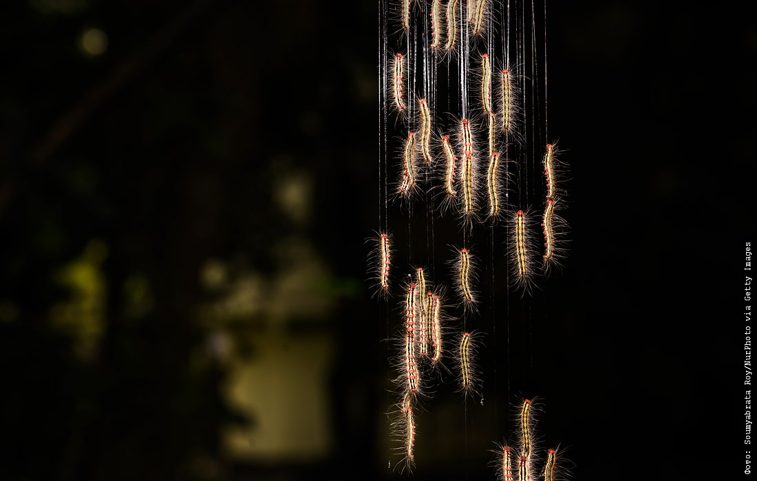 Гусеницы коконопряда. Западная Бенгалия, Индия.