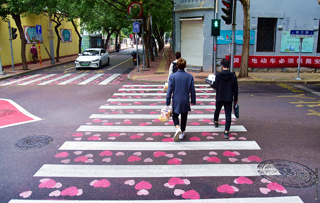 В китайском городе Цзинань появился пешеходный переход, украшенный сердечками