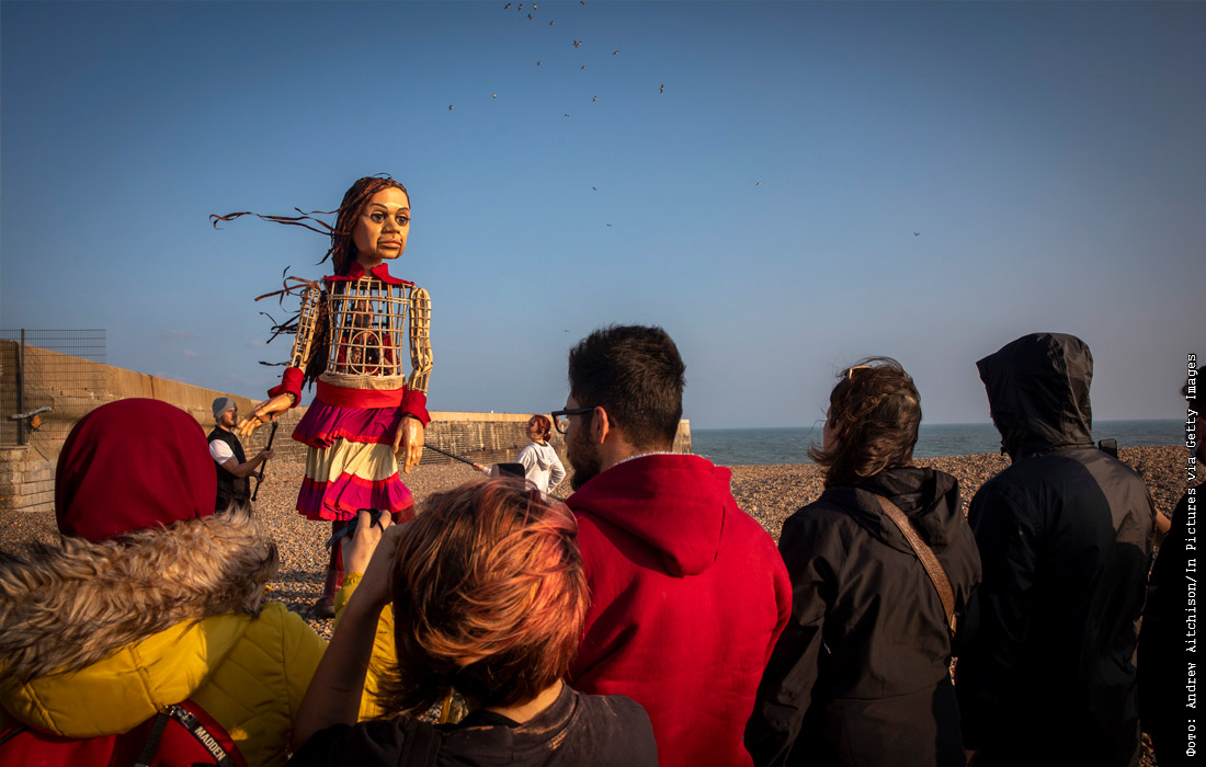 Кукла "Маленькая Амаль", символизирующая девочку-беженку из Сирии, прибыла в Великобританию