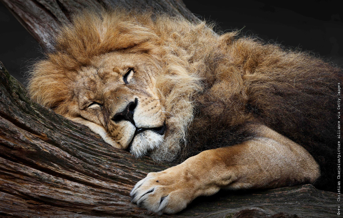 Лев отдыхает в вольере зоопарка Хагенбека в немецком Гамбурге