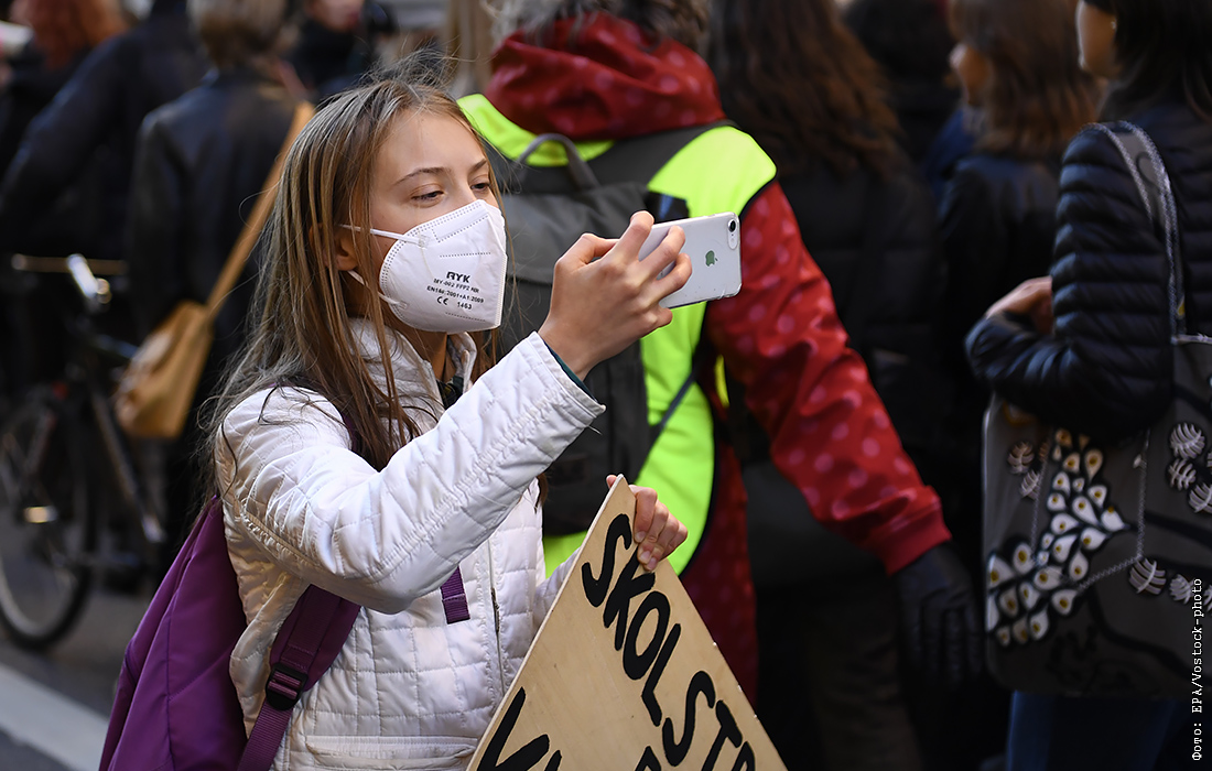 Экоактивистка Грета Тунберг на акции в защиту климата в Стокгольме