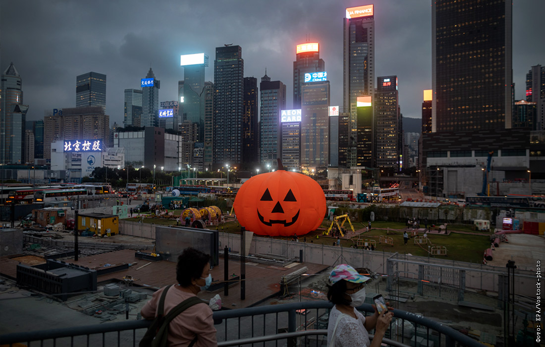 Район Ваньчай в Гонконге украсили к Хэллоуину