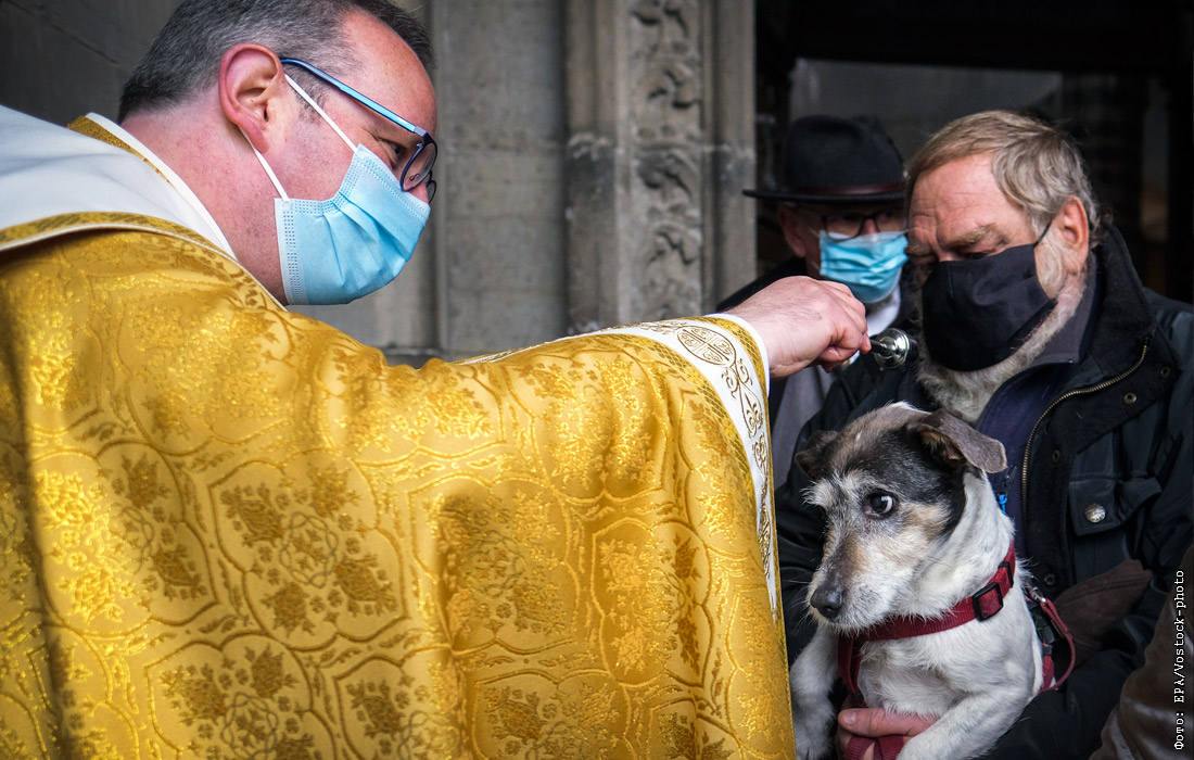 В бельгийском городе Сент-Юбер священник провел ежегодную церемонию благословения животных возле базилики Святых Петра и Павла