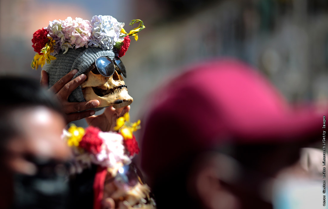 В Боливии прошел День Черепов. В этот день жители страны устраивают шествие с останками своих умерших предков, украшая их цветами и вещами, которые они любили носить при жизни.