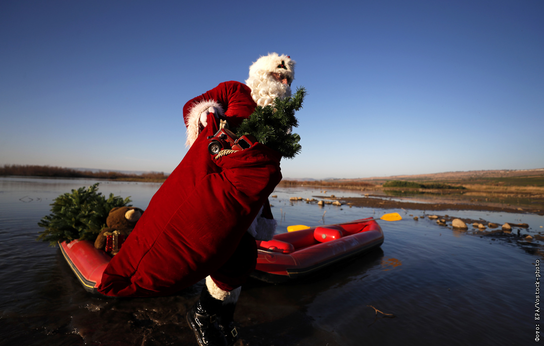 Иерусалимский Санта-Клаус принимает участие в праздничном мероприятии перед Рождеством на Голанских высотах