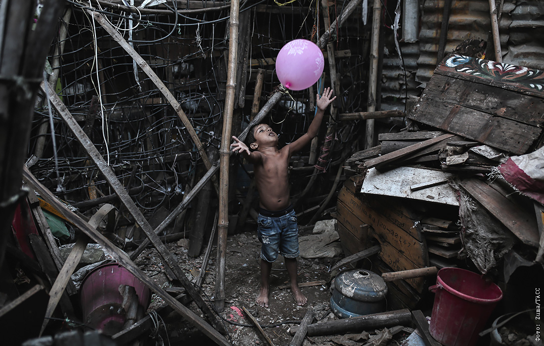 Бангладешский мальчик в трущобах Кораил