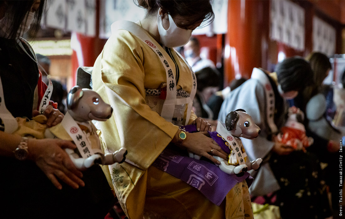 Владельцы роботов-собак Aibo провели совместную молитву в храме Канда в Токио