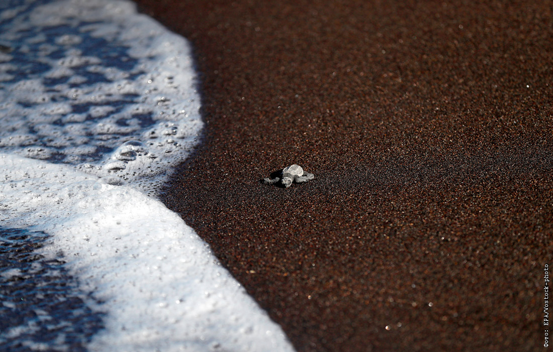 В Гватемале на пляже Монтеррико выпустили в океан детенышей оливковых черепах