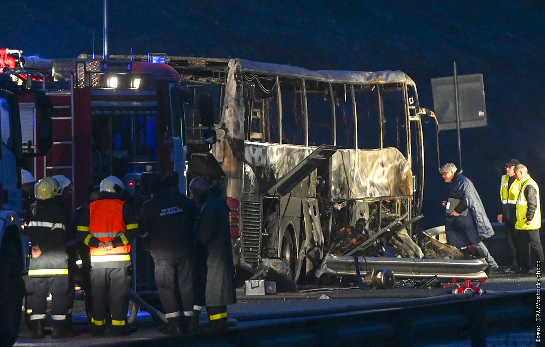 По меньшей мере 45 человек погибли в результате пожара автобуса на шоссе в Болгарии