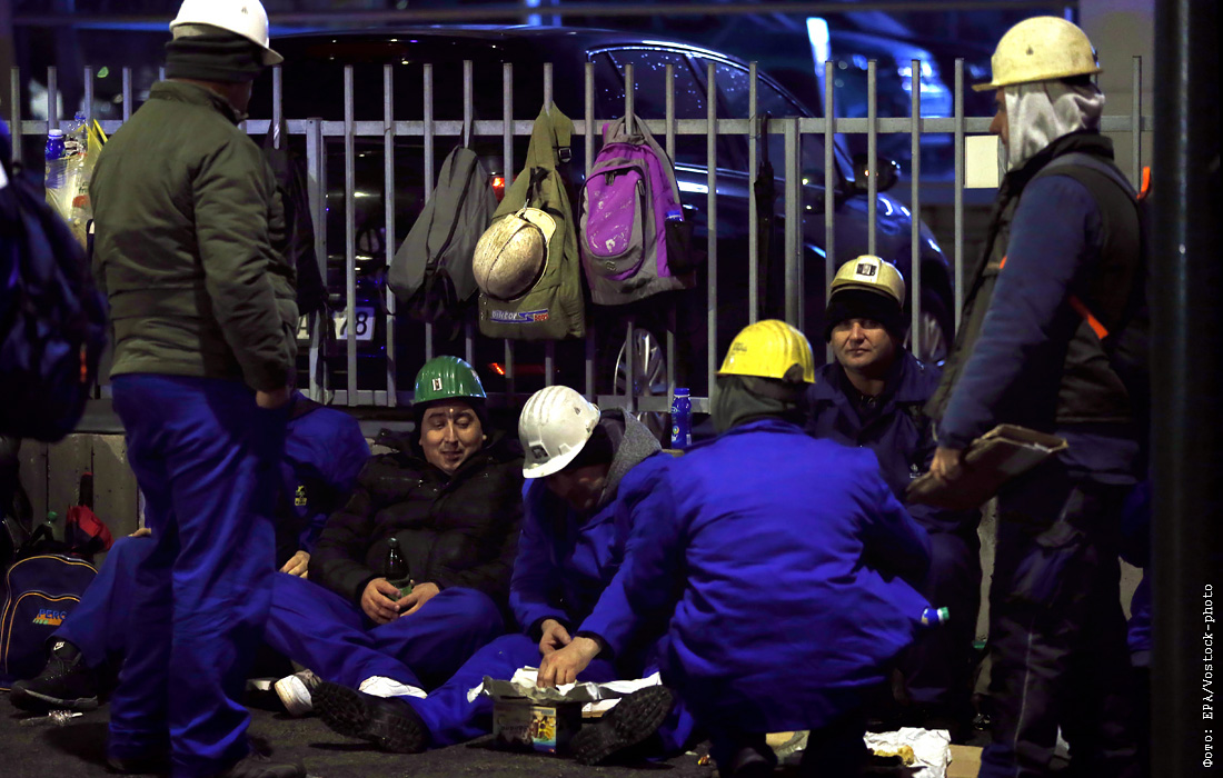 Массовая забастовка шахтеров у здания правительства в Сараево