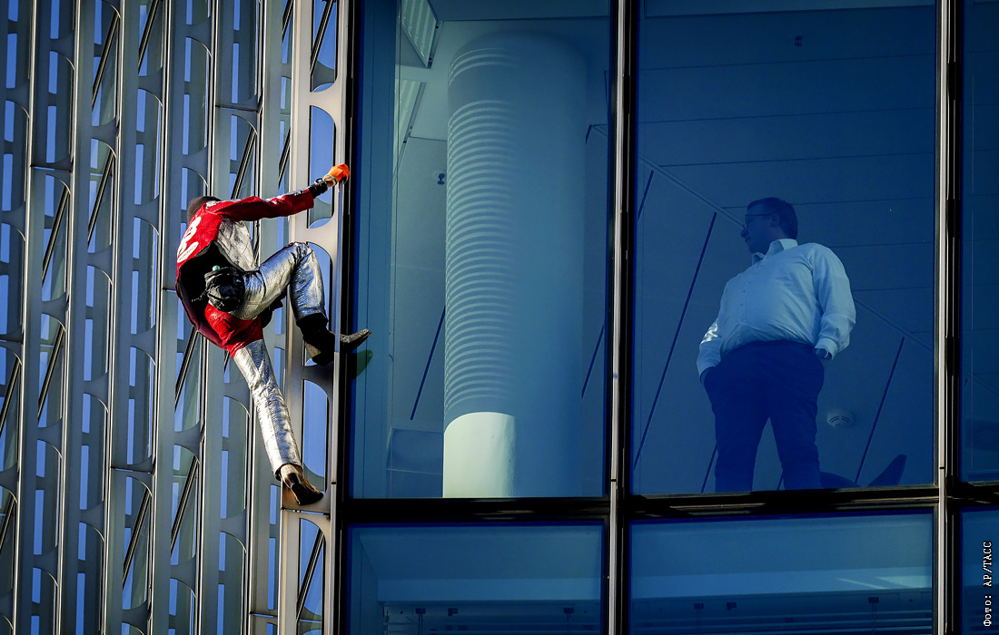 Французский скалолаз Ален Робер залез на высотку в центре Франкфурта