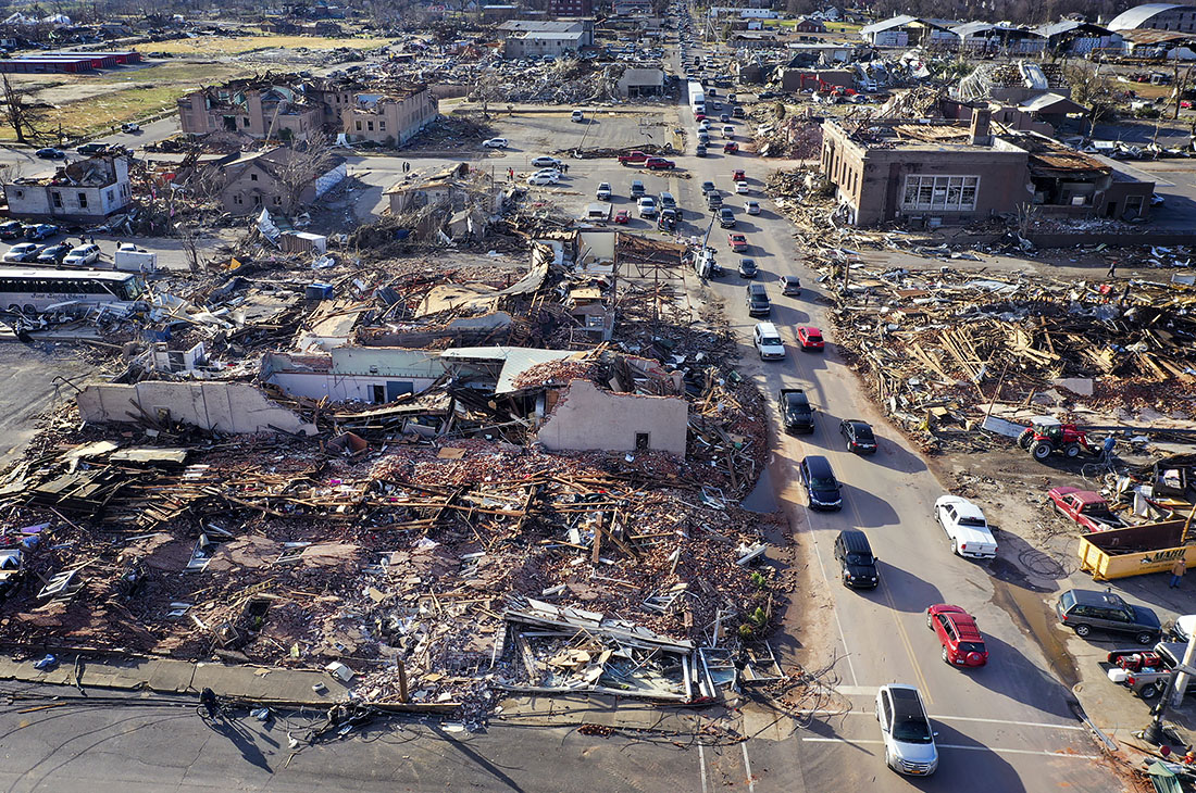 По меньшей мере тридцать торнадо прошли через шесть штатов США - Миссури, Миссисипи, Арканзас, Теннесси, Иллинойс, Кентукки - в течение вечера пятницы и утра субботы. По официальным данным, погибнуть могли более 80 человек, поисковые работы продолжаются. Больше всего пострадал штат Кентукки, в частности, город Мейфилд был почти полностью разрушен.