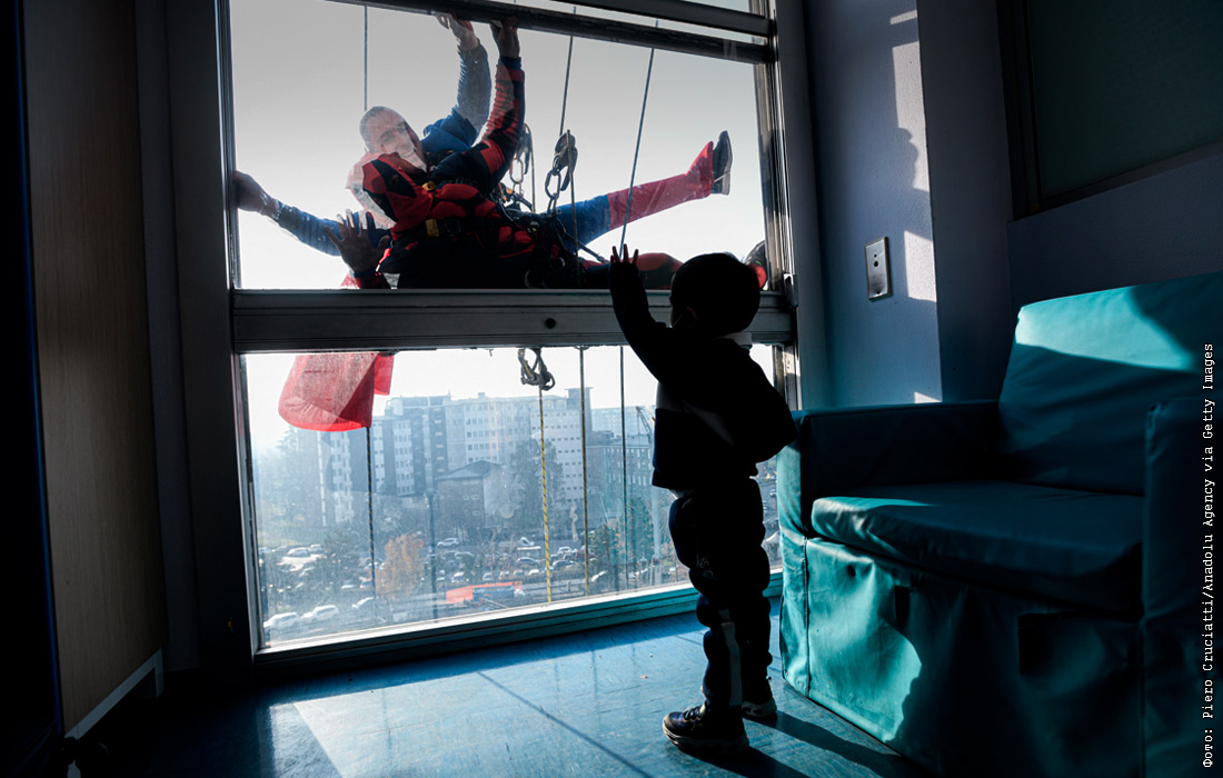 Альпинисты в костюмах супергероев навестили юных пациентов больницы в Милане
