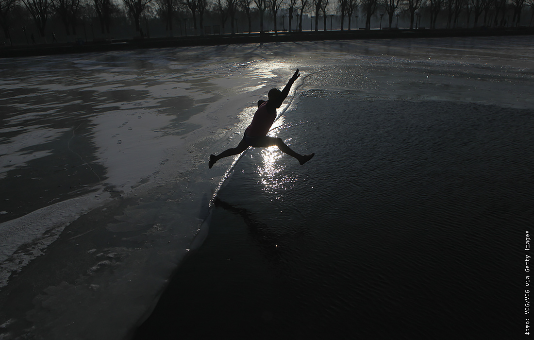 Купание в зимней проруби в китайском Шэньяне