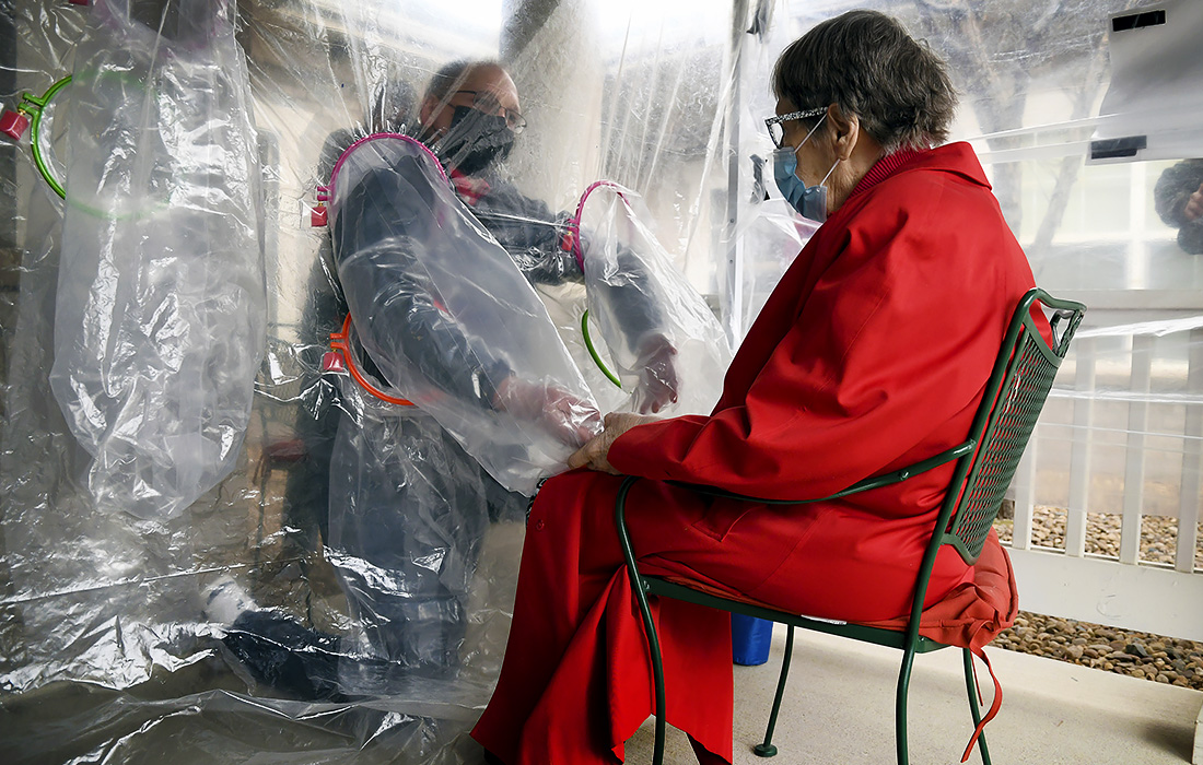 1 марта. Пластиковую перегородку для объятий пациентов с родственниками установили в доме престарелых в Луисвилле, штат Колорадо, США.