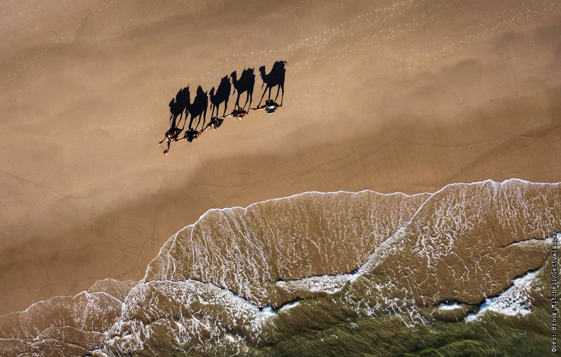 Верблюды на пляже Байрон-Бей, Австралия